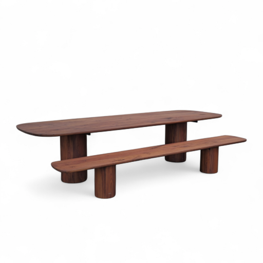 2.2 m Massiv Teak / Stainless Steel Rectangular Table with Armchair and Bench | ชุดโต๊ะอาหารท็อปโต๊ะไม้สักขาสเตนเลสพร้อมเก้าอี้และม้านั่ง