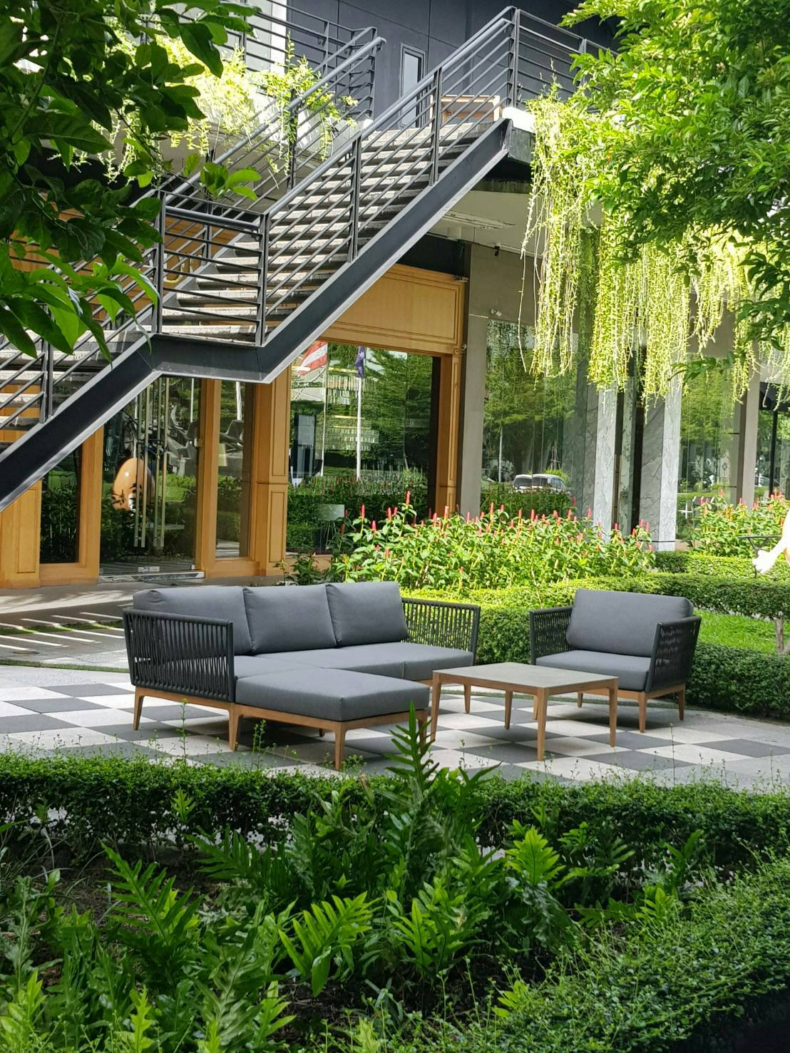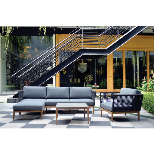 โซฟาไม้สักอลูมิเนียมถักเชือก 1 ที่นั่ง พร้อมเบาะ Sunbrella Seat Cushion