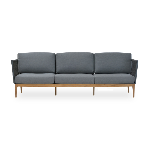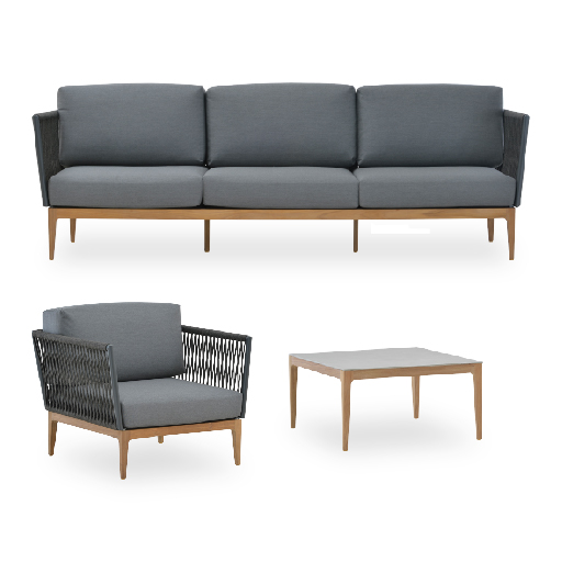 โซฟาไม้สักอลูมิเนียมถักเชือก 3 ที่นั่ง พร้อมเบาะ Sunbrella Seat Cushion
