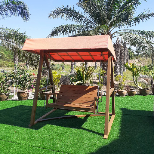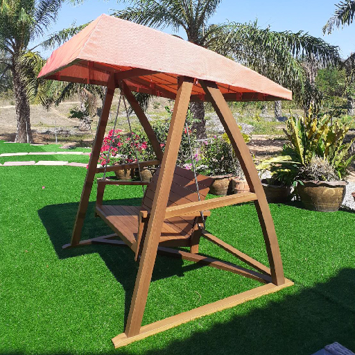 ชิงช้าไม้สักทั้งหลังพร้อมหลังคาผ้าใยสังเคราะห์ทนแดดทนฝน