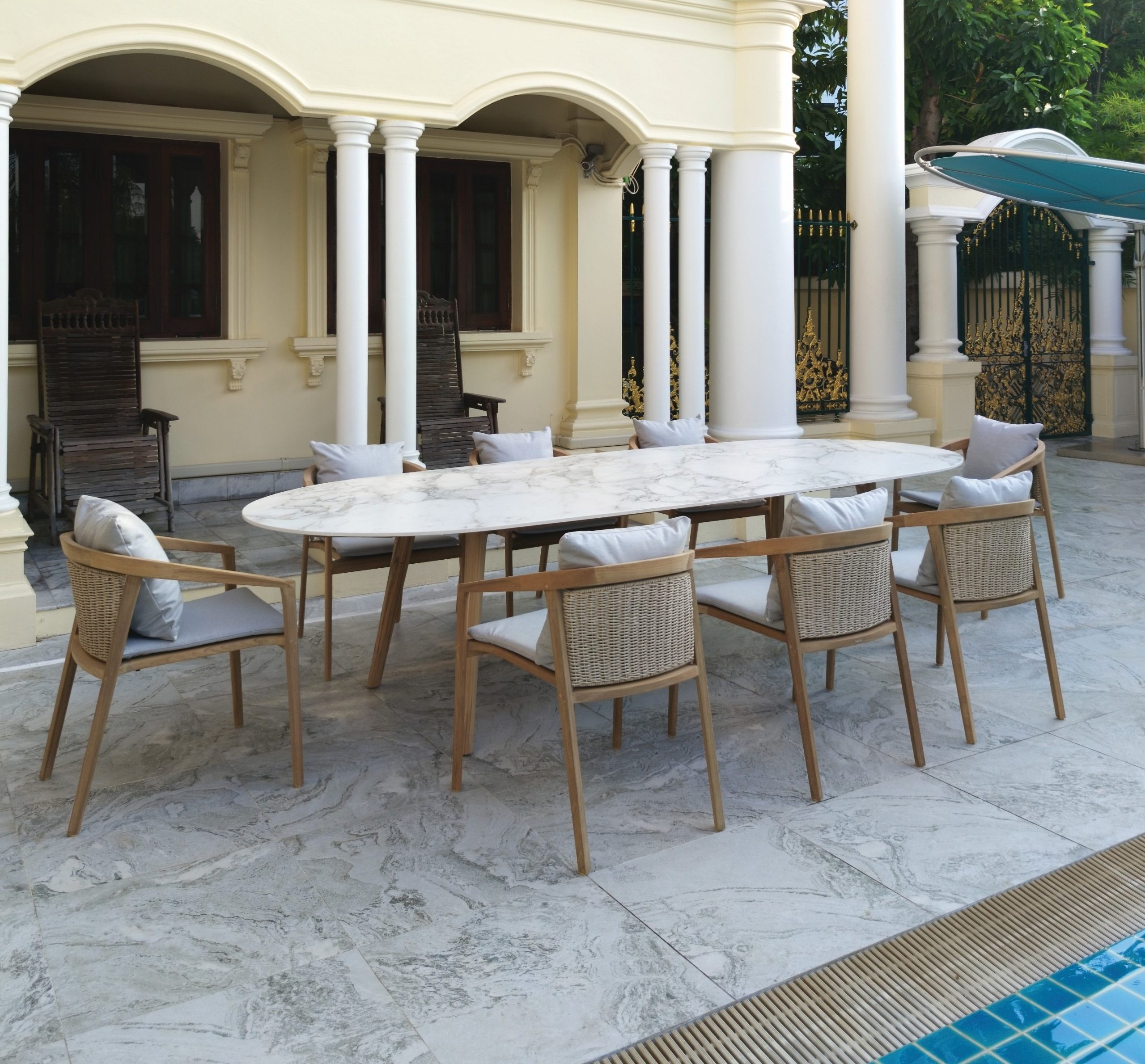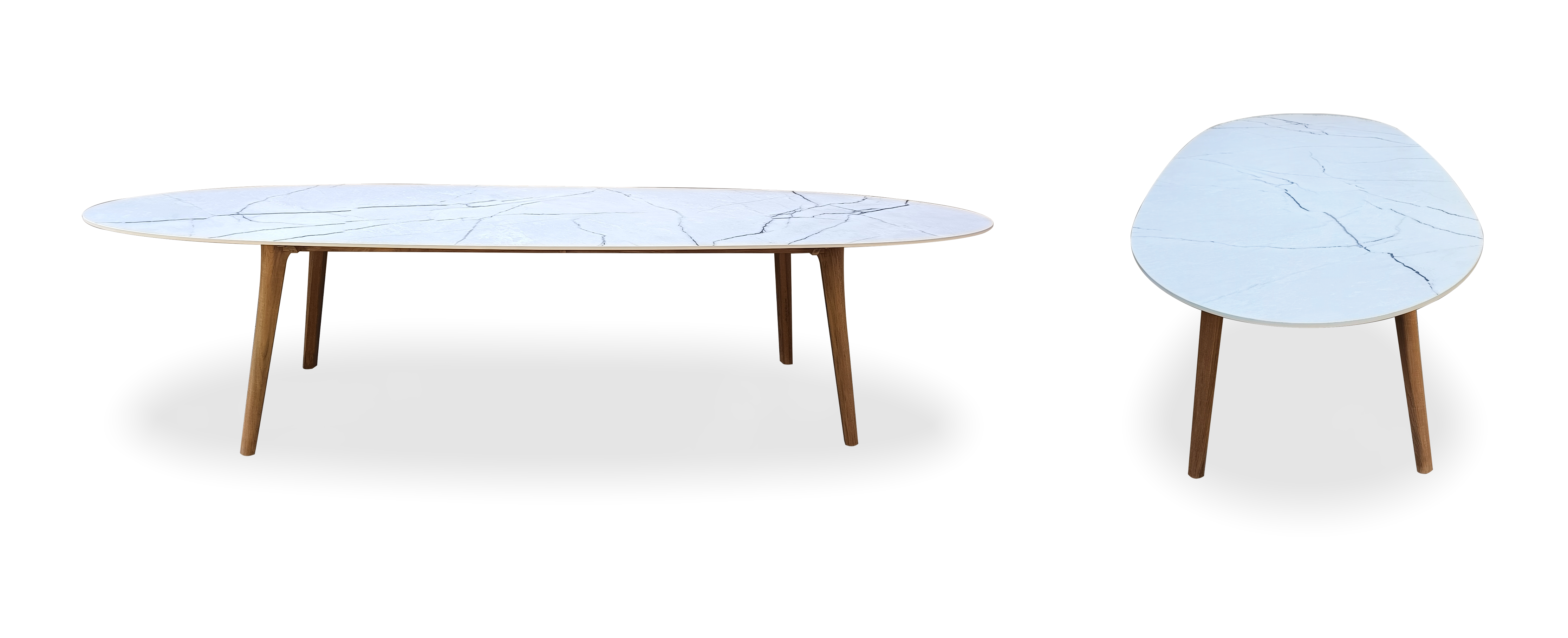 TEAK / STONE OVAL TABLE AND TEAK โต๊ะทานข้าวไม้สักทรงวงรีท็อปโต๊ะหินสังเคราะห์